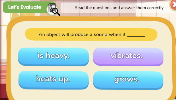 In “Let’s Explore” interactive, students get to carry out investigation and explore new concept through concrete learning experiences. For example, with limited knowledge about making a kazoo, students will try explore the concept of how sound is produced by making their own kazoo.